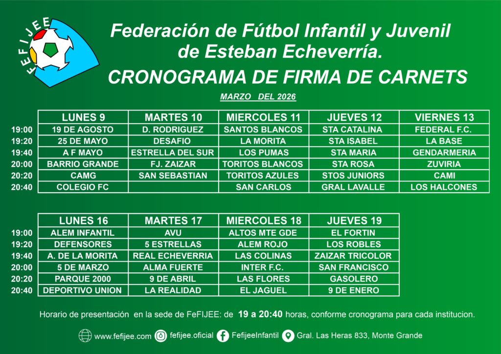 La Federación de Fútbol Infantil y Juvenil de Esteban Echeverría informa a los clubes miembros las actualizaciones de la agenda para el inicio de la temporada. 🚩 Reprogramación: Fiesta AperturaPor…